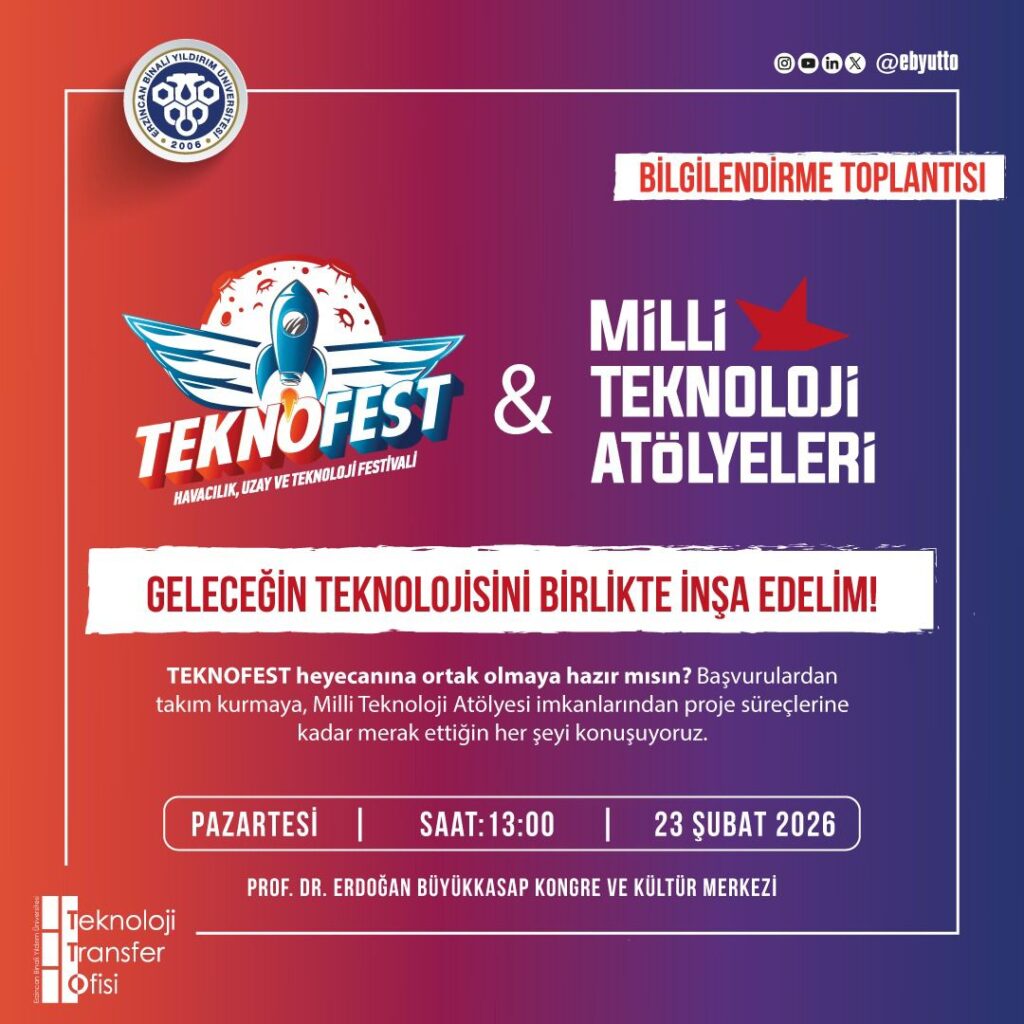 TEKNOFEST ve Milli Teknoloji Atölyesi Tanıtım konferansı T3 Vakfı Erzincan İl Sorumlusu Dr. Öğr. Gör. N. Oğuzhan Akoğuz’un sunumuyla, Erzincan Binali Yıldırım Üniversitesi Prof. Dr. Erdoğan Büyükkasap Kongre ve Kültür Merkezinde gerçekleşti. Konferansta başvurulardan takım kurmaya, Milli Teknoloji Atölyesi imkanlarından proje süreçlerine kadar merak edilen konulara değinildi.